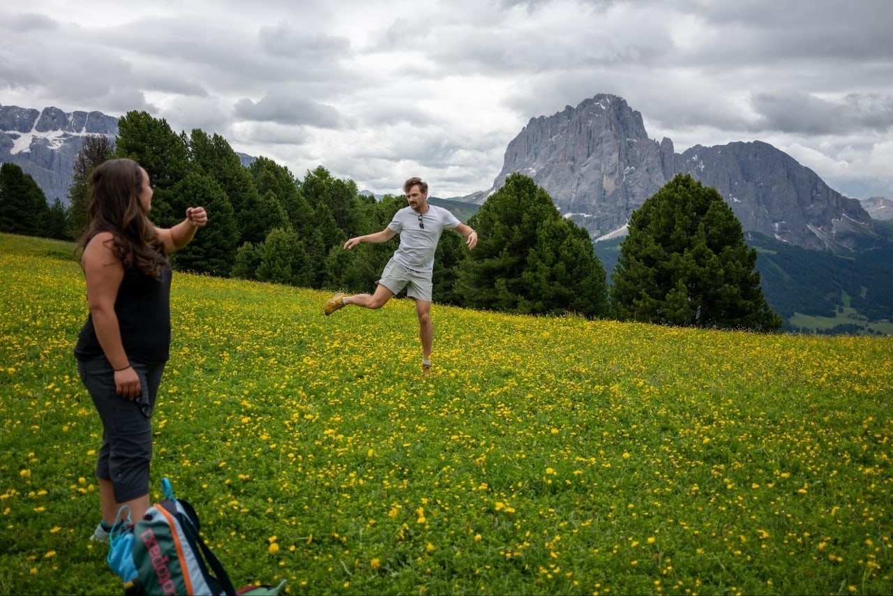 Finally, we pet a donkey, took a few funny photos of Kurt “frolicking” in a sea of yellow wildflowers and sat down to grab a beer thinking the trek was over. Instead we ended up hiking over about half a mile, paying another 15 euro to go back up to the top (we couldn’t ride down as it ended in the wrong town) and then we could ride down with the ticket we already had. It had gorgeous views and I contemplated getting my Italian citizenship at some point staring at the mountains. Seceda Mountain stands at 8,264 feet tall and it was an impressive jagged group of peaks.